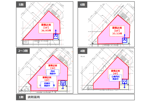 | 担当者から一言 | 【クリニック開業・医院開業物件お問い合わせNo、T-584】 ■募集区画 【6階】35.53坪 賃料 17,000円 共益費1,000円 月額賃料 639,540円 【5階】36.95坪 賃料 17,000円 共益費1,000円 月額賃料 665,100円 【4階】44.45坪 心療内科 商談中 【3階】54.89坪 内科 商談中 【2階】54.89坪 皮膚科 商談中 契約形態:定期建物賃貸借契約 契約期間:調整中 敷金:調整中 竣工:2027年1月(予定) その他:調整中 |