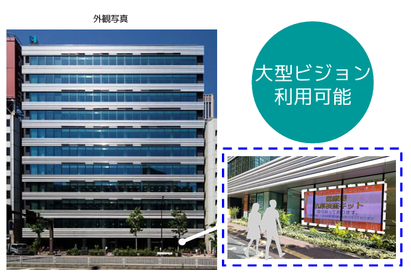 | 特長 | 駅チカ徒歩1分、外堀に面したオフィスビル内テナント。視認性が高く、集患が期待できる立地です。 |