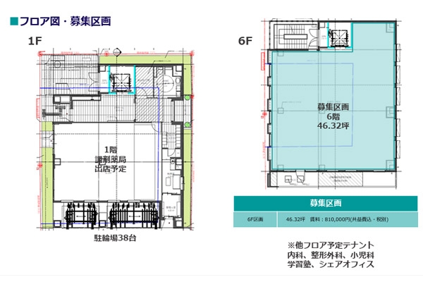 | 担当者から一言 | 【クリニック開業・医院開業物件お問い合わせNo、T-619】 2026年3月竣工済 ■募集区画 【6階】46.32坪 ・構造:鉄骨造地上9階建 ・内装:スケルトン渡し ・賃料:6階810,000円(共益費込・税別) ・敷金:家賃6か月分 ・契約形態:定期建物賃貸借契約15年 |